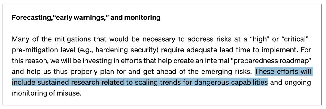 Anticipating risk has fallen by the wayside: Companies like OpenAI previously committed to studying scaling trends to forecast when AI will surpass truly dangerous levels of capabilities. But it’s been nearly two years since OpenAI published this intention in its safety commitments, and I’ve yet to hear any evidence that these efforts are happening.
